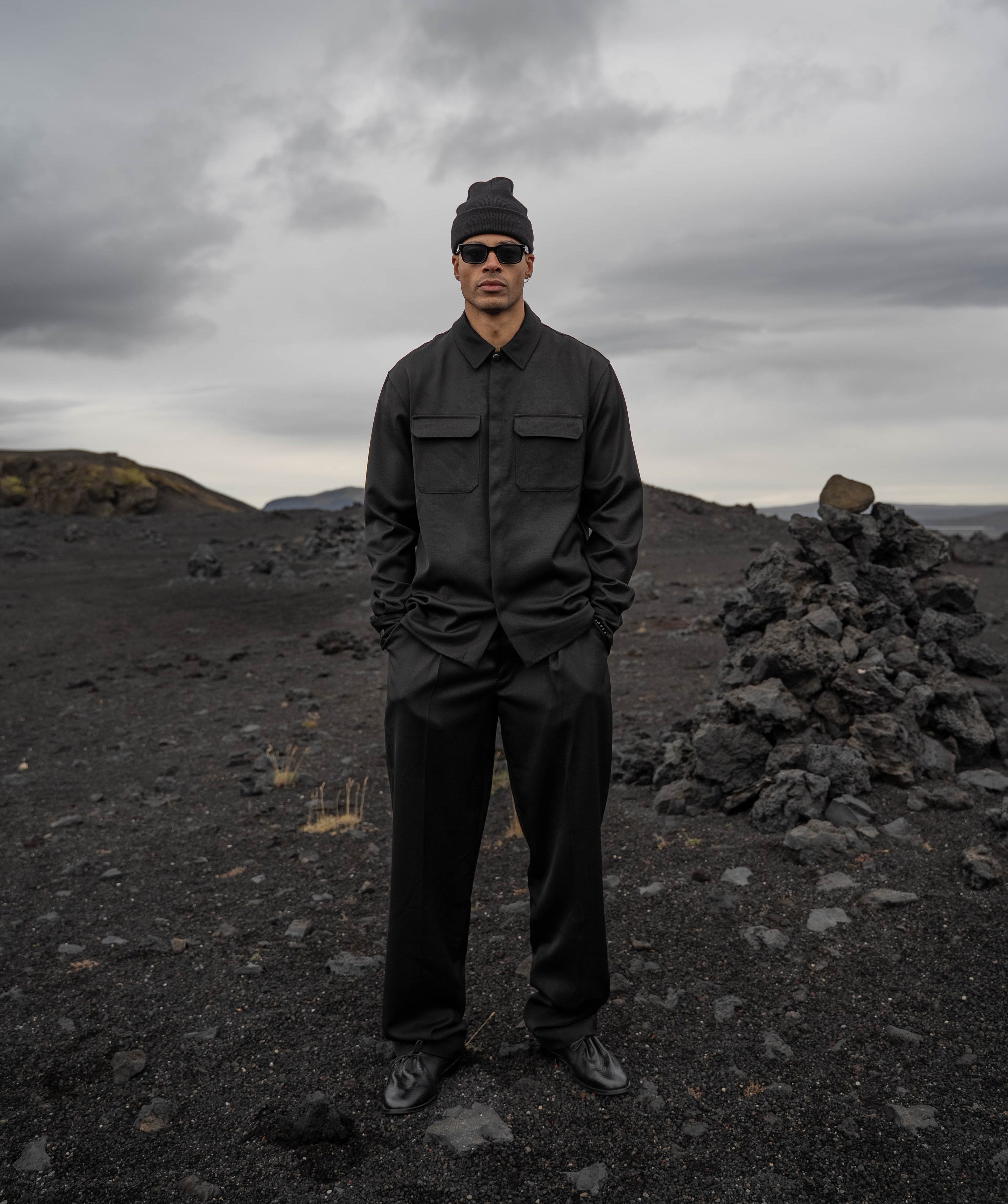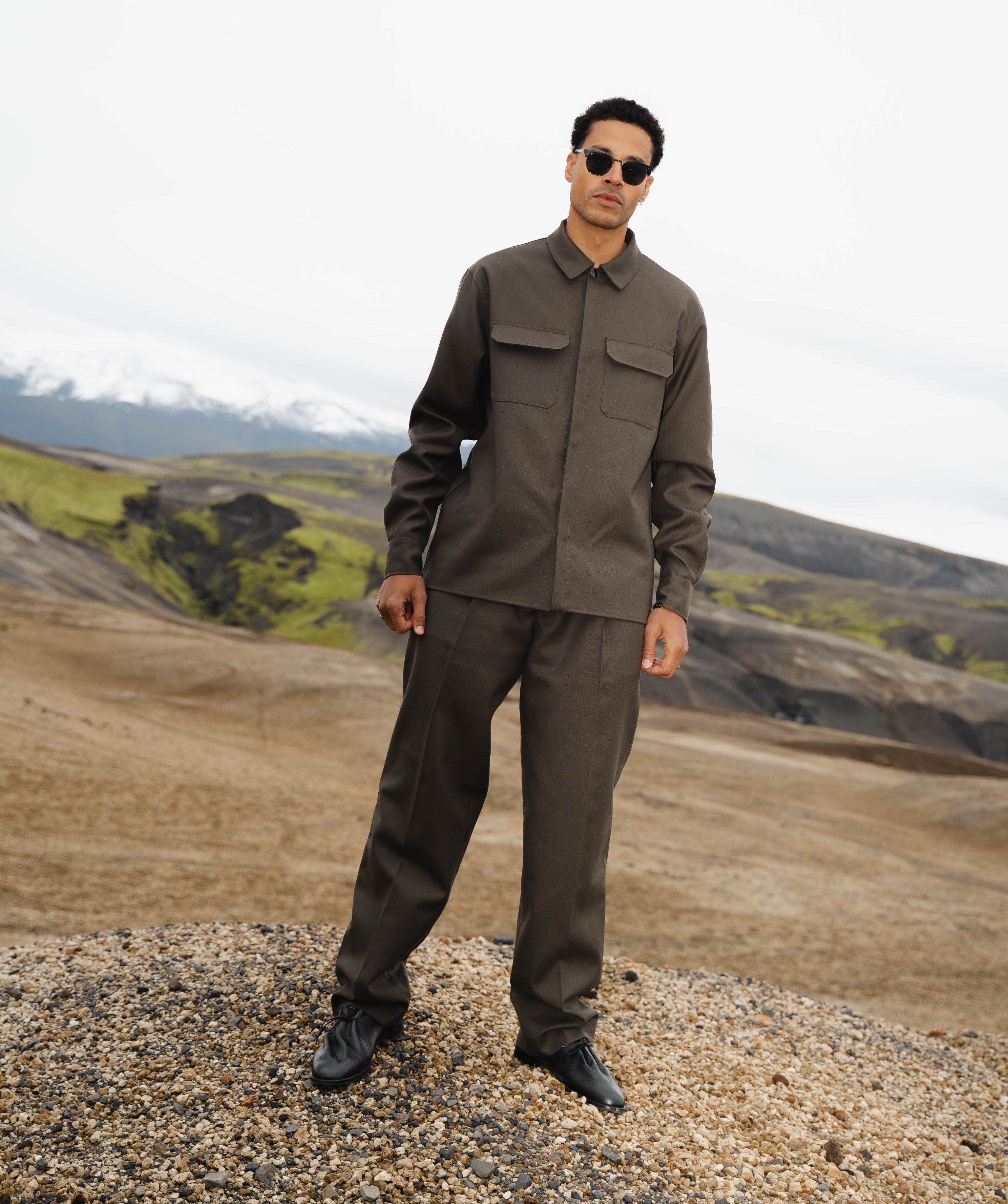 Wool overshirt and pants — clean lines, noble fabric, and a confident style that stands out through its simplicity and excellence.