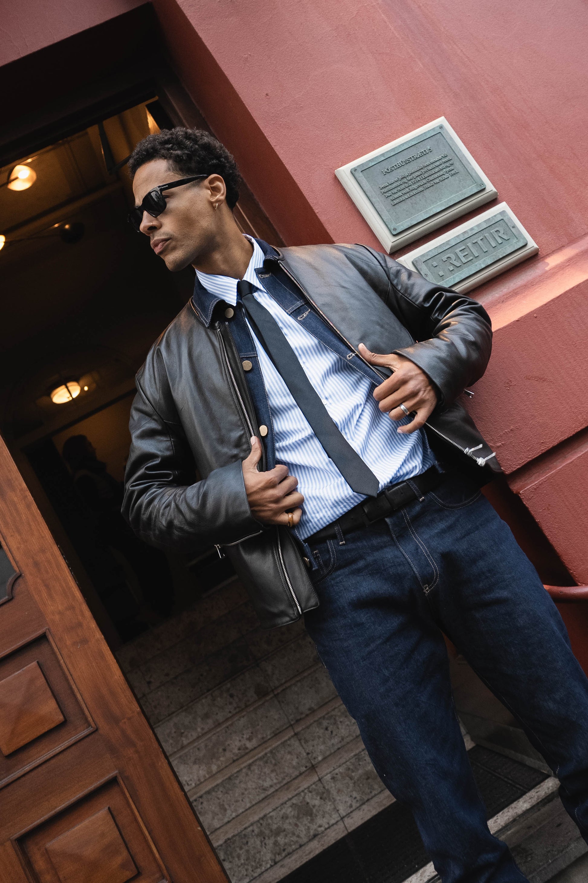 Les boutons en nacre soulignent son caractère premium, tandis que la coupe, pensée pour les grandes silhouettes, sublime naturellement la stature et les lignes.
