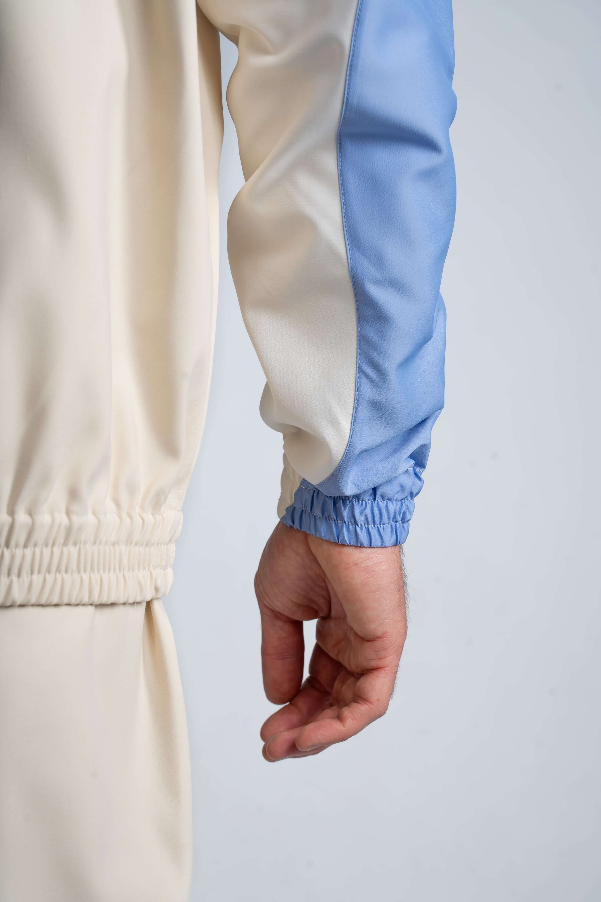 - Empiècement technique bleu déperlant sur les manches